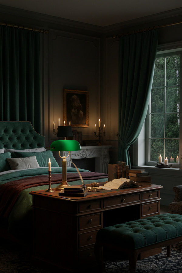 Position this lamp on a nightstand or writing desk for instant elegance. The rich emerald shade creates a cozy, focused glow that’s perfect for late-night reading.